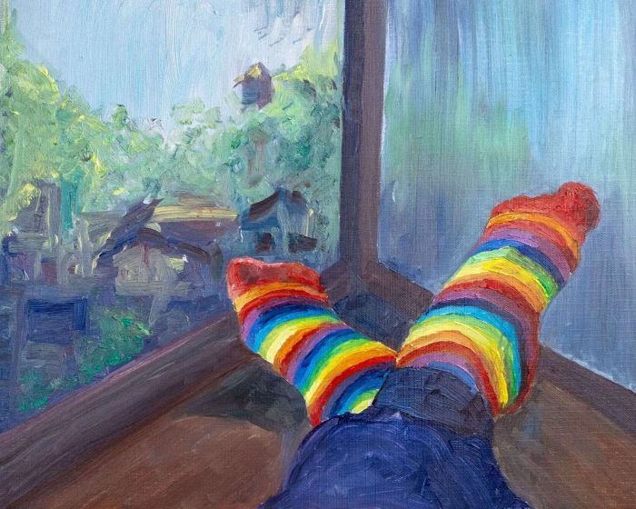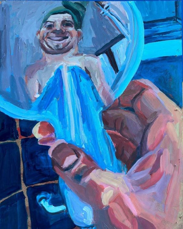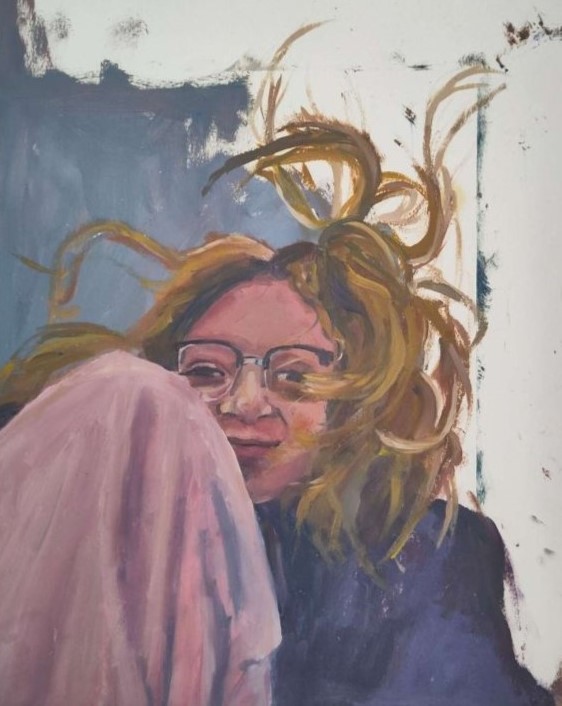 Merle Renkl ist 21 Jahre alt und Kunststudentin. Sie hat in ihren jungen Jahren bereits einen ganz eigenen, wundervollen Stil entwickelt, kraftvoll, inspirierend, farbenfroh. In balancierten Nuancen von groben und feinen Pinselstrichen fängt sie Momente, Stimmungen und Gefühle ein, lässt Perspektiven und Tiefe entstehen. Ihre Themen wie Porträts, Fremd- und Eigenwahrnehmung und Systemkritik werden humorvoll und warm in Kunstwerke gebildert.